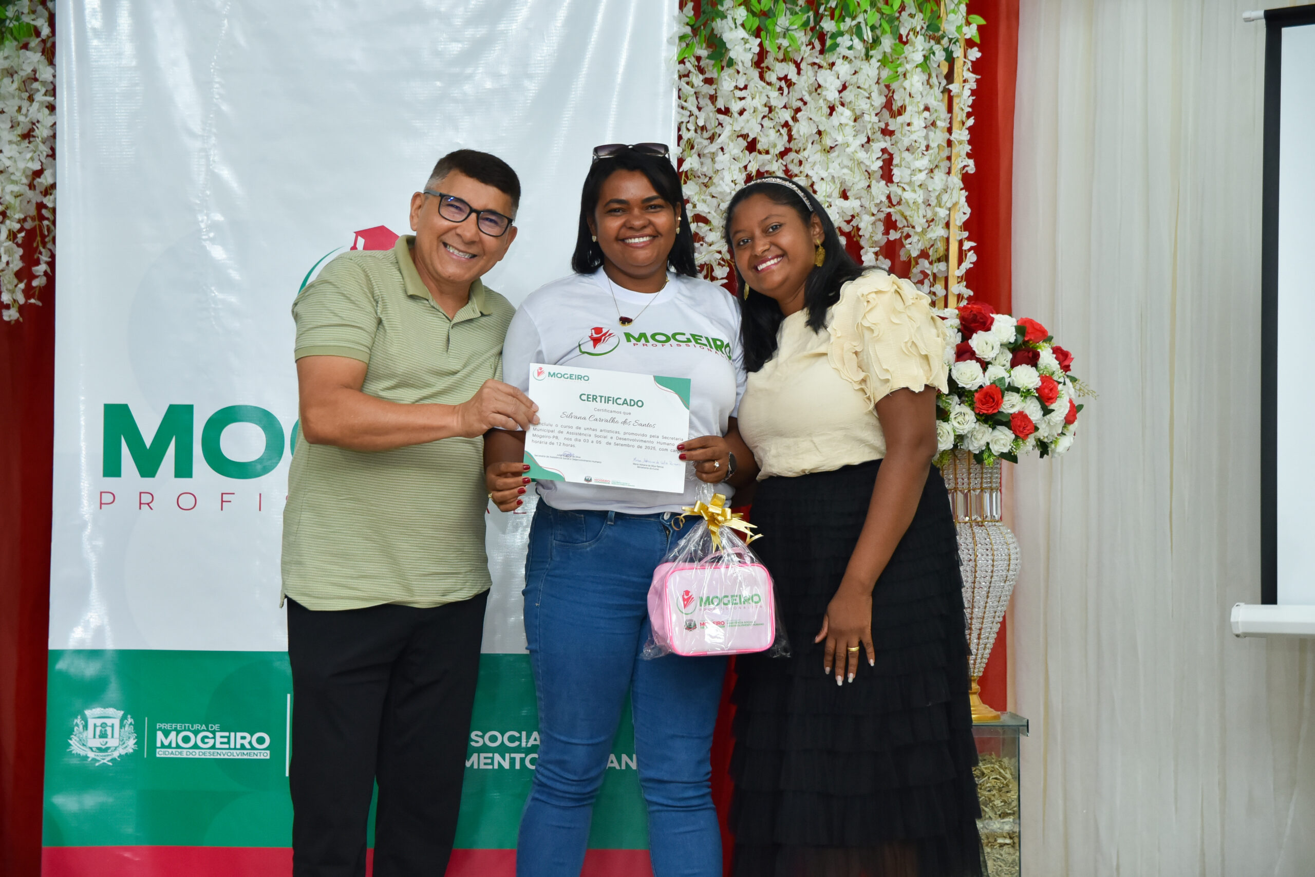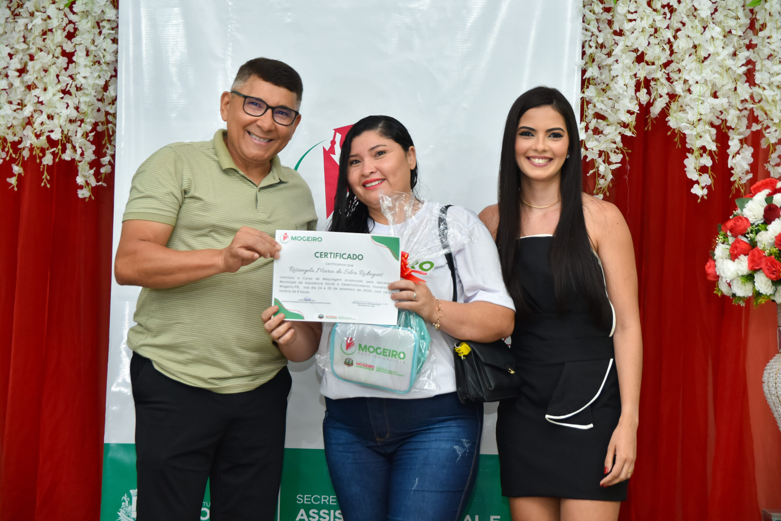 A Prefeitura de Mogeiro realizou, nesta terça-feira (18), a solenidade de entrega dos certificados dos cursos do Projeto Mogeiro Profissionaliza, iniciativa da Secretaria Municipal de Assistência Social e Desenvolvimento Humano que vem transformando vidas e fortalecendo o desenvolvimento profissional no município. O momento foi marcado pelo aperfeiçoamento de habilidades, pela descoberta de novos talentos e pela dedicação dos participantes.